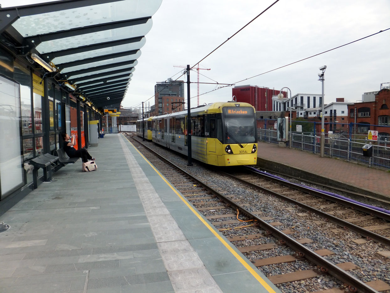 Taken on 17th October 3054 leads a double unit into Deansgate-Castlefield. This service still uses the exisiting outbound platform. The photo is taken from the new inbound platform.