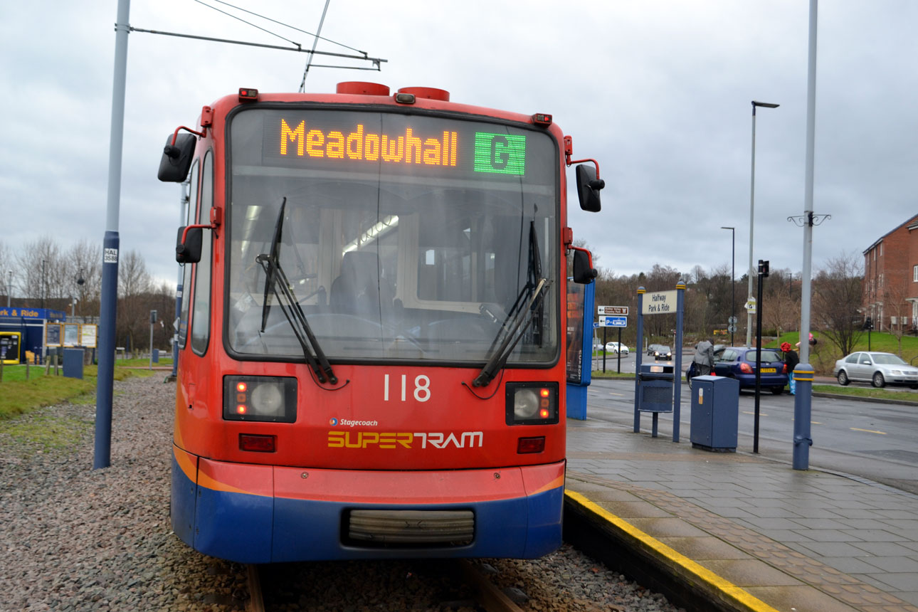118 stands at Halfway with a Festive Blue route service to Meadowhall. So now we know that festive blue is in fact green! (Photo: Nigel Eagin)