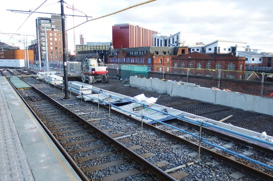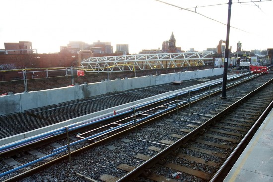 As well as the major transformation works at Victoria (see separate story) works continue to take place at Deansgate-Castlefield which will end up with three platforms once these are completed. Work has now moved onto reconstructing the outbound platform and the old structure here has been removed and will now be rebuilt. All services continue to use the new island platform until the work is finished, which is scheduled to be this summer. Photos taken by Steve Kemp.