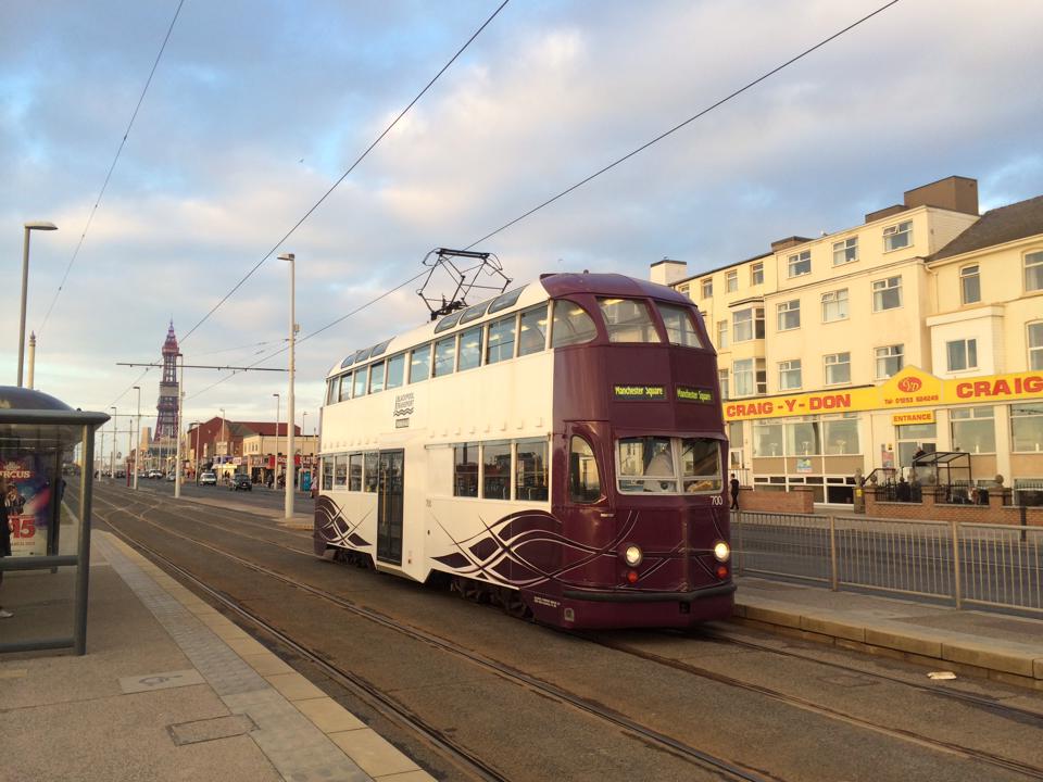 A historic day draws to a close in Blackpool, as Balloon 700 is seen heading back to Rigby Road depot following its successful outing on 14th February 2015. (Photo by Shaun Whitehead)
