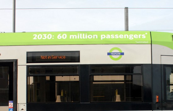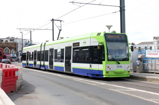 Currently the Tramlink fleet has six trams in full advertising liveries (2531, 2534, 2538, 2542, 2550 and 2554) plus 2546 in this slightly altered fleet livery with the remainder in the standard fleet livery. The fleet currently stands at 31 trams with 24 CR4000s and 7 Variotrams (of which one, 2560, is still undergoing commissioning). There are due to be another 3 Variotrams delivered over the next few months.