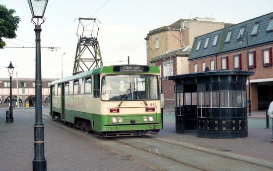 Centenary Car 645 was the first of the class to arrive in Blackpool during 1987 being delivered to Rigby Road Depot on 8th September 1987. It was to be nearly two months before the tram carried its first passengers entering service on 27th October 1987. At the time of this photo 645 had only ever carried green and cream fleet livery although was in the second simpler style at this stage. It was to be only a few more months before 645 would receive its first all over advert livery and since then has never been reintroduced to a green or cream paint pot. 645 failed in service on the last day of the traditional Blackpool Tramway on 6th November 2011 and left Rigby Road in January 2012 for the Windy Harbour Caravan Park where it remains today.