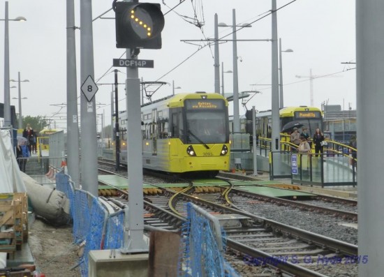 As expected on Tuesday 2nd June the new outbound platform at Deansgate-Castlefield reopened to Manchester Metrolink services for Altrincham, Eccles, MediaCityUK and East Didsbury. On the same date the new TMS control system for the three track layout was brought into use meaning trams can now use the full flexibility of the new layout.