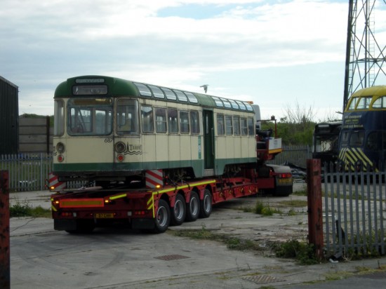 Four trams whose future has been in doubt since the end of last year following news that Merseytravel were seeking to dispose of them have been saved and are starting to return to the Fylde Coast. Brush Cars 625 and 637 along with Twin Trailer Cars 681 and 687 were acquired by Merseytravel for the Wirral Waters project which would have seen the Birkenhead Heritage Tramway extended but following the formal abandonment of this project they were deemed surplus to requirements and made available for purchase. All four trams have been purchased by a private purchaser and will be stored at the Fleetwood Heritage Leisure Trust’s site at Wyre Dock.