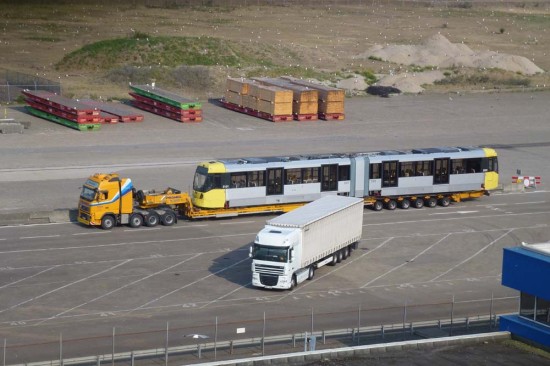 Last week we reported that the latest M5000 for Manchester Metrolink, 3101, had arrived at Queens Road Depot and this week we show a photo of it, courtesy of Christoph Heuer, as it made its way to the UK. All deliveries of the M5000s have to make a ferry trip across the North Sea to Hull and this photo shows the tram as it awaits loading onto the Pride of Hull at Rotterdam on 3rd July.