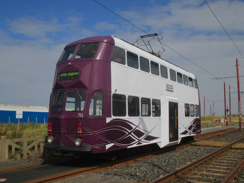 711 is seen again, this time at Pleasure Beach with the destination blind already changed ready for its next northbound trip. Note the large banner in place at the adjacent platform directing potential customers to the nearby heritage tram stop.