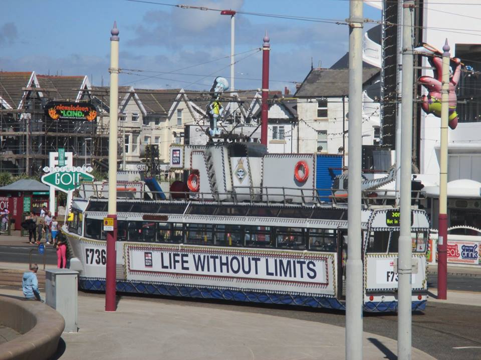 An unusual view of Frigate 736 seen heading north from Pleasure Beach from the vantage point of open top Balloon car 706's top deck on August 10th. (Photo by Rob Bray)