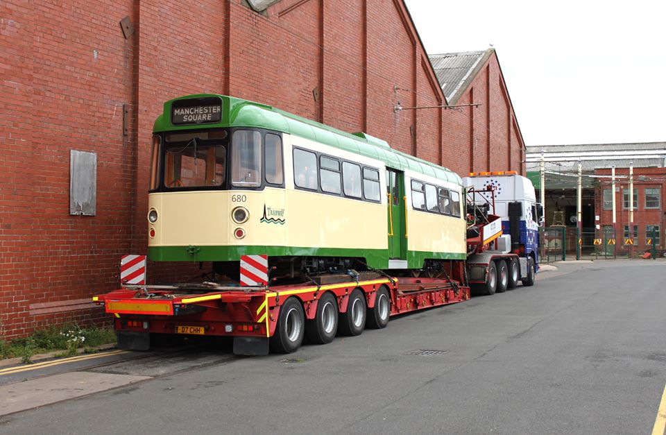 Can you have too many pictures of this stunning tramcar returning home? Here we are again on Blundell Street with 680 on its low loader waiting to be unloaded starting its loan period. (Photo courtesy of Blackpool Heritage Tram Tours)