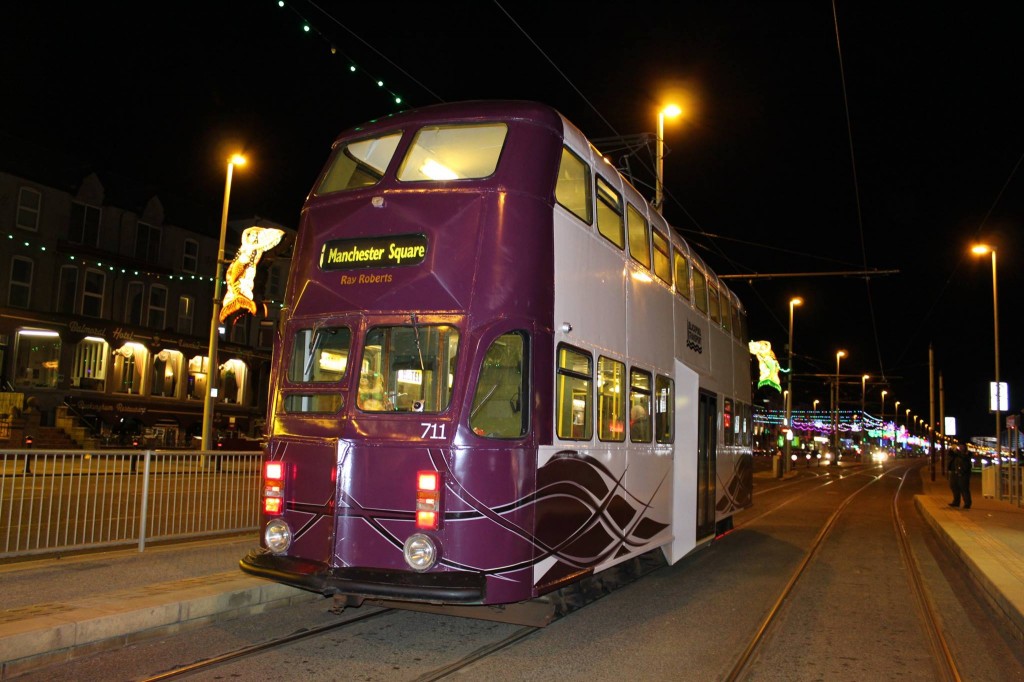On a few occasions, one member of the ‘B Fleet’ has stayed out after dusk giving the novel sight of a purple and white Balloon car running in darkness. Add in the illuminations and you have a very pleasing sight indeed, and one had not previously occurred since the tramway upgrade. Although the use of the ‘B Fleet’ (and indeed the appearance of the trams themselves) will probably never attract universal approval, it is good to see some of the cars finally serving a useful purpose rather than gathering dust at the back of a depot. 700 and 711 are running extremely well, although 719 has experienced some minor faults recently and seems to be the least reliable of the trio, it being the only one so far not to have enjoyed a late night shift. Some issues remain to be ironed out however; some crews have recently taken to running ‘out of service’ to and from Rigby Road depot, including some runs from as far north as Bispham! Totally unacceptable behaviour by a small minority which lets down the excellent work done by the majority of Blackpool Transport’s staff.