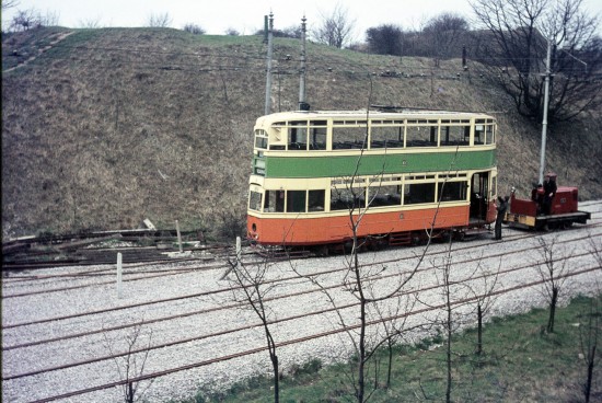 1100 was built in 1928 as one of 30 trams constructed by Hurst Nelson and seemed to spend much of its life in Glasgow testing new equipment and as such was seen as a rather unique tram which meant its use was limited as time wore on. Originally earmarked for scrapping in 1949 1100 actually managed to survive until the end of the Glasgow Corporation Tramways in 1962 and operated a number of enthusiast tours. The last tram to leave the car works the tram was of many trams from Glasgow to head to Crich and it entered service in the Derbyshire countryside in 1965, running every year until 1976. At this time it was withdrawn from service having run just over 2,000 miles at Crich and then became a static exhibit waiting for its turn to go through the workshops. In 2005 space was getting tight for the trams on sight and a decision was made for three trams to leave the main Museum site and head to Clay Cross, 1100 was one of these trams and after making a static appearance at the Enthusiasts’ Day that September it made a road trip further into Derbyshire. It remains at Clay Cross today with no sign that its time in storage will be ended any time soon.