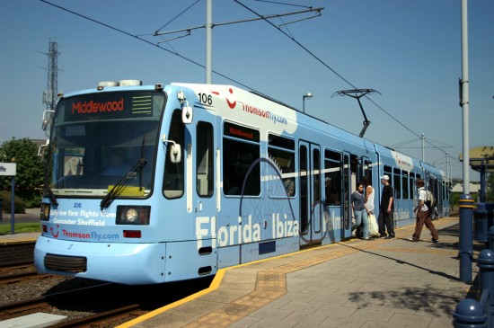 As Stagecoach Supertram are throwing open the doors to their depot today where better can we go for the latest Picture in Time image than Sheffield and a view of one of the many advertising liveries carried on one of the Siemens built trams over the years?