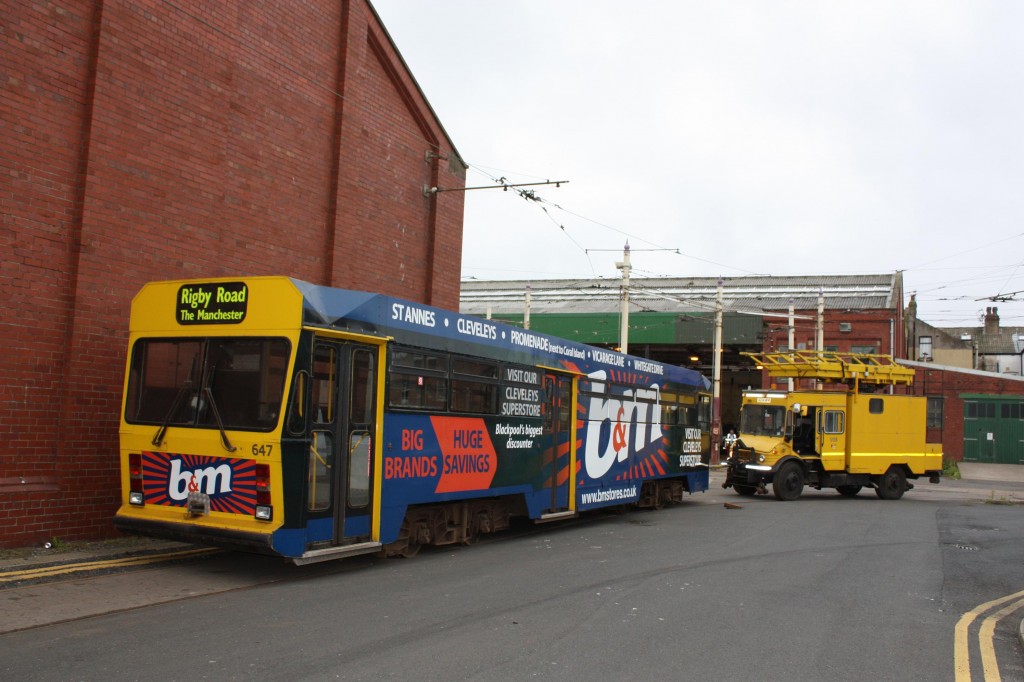 Tuesday 10th July 2012 saw the second tram in consecutive days to leave Blackpool’s Rigby Road depot for good, when Centenary car 647 set off for pastures new on the back of a low loader provided by Scott’s Heavy Haulage. The tram, which last ran on 6th November 2011, has been acquired for preservation by the North Eastern Electrical Traction Trust and is unlikely to ever return to Blackpool, making this a significant day in the relatively short history of the tram.