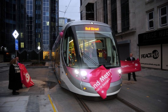 All trams from Wolverhampton St George’s will now be running all the way through to Bull Street (with the destination screens showing Bull Street) for now. Work is continuing on the remainder of the city centre extension with three further stops due to open at Snow Hill, Corporation Street and Grand Central (New Street) at some point during the early part of 2016. It had been originally hoped the full extension would open at the same time but it has been agreed with city businesses that in order to minimise disruption during the busy Christmas trading period there will be a reduction in the amount of work being undertaken.