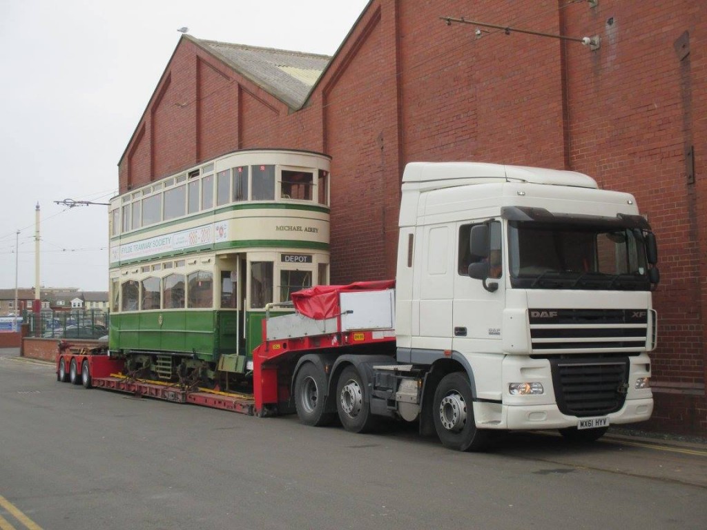 Standard 147 is all loaded up and final preparations are made with the tram being secured in place on the transporter unit provided by Calkeld's heavy hauliers.