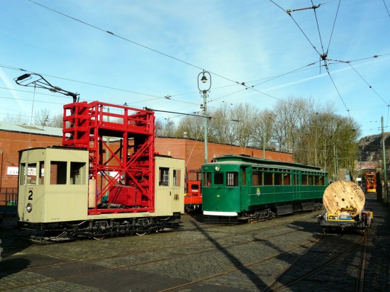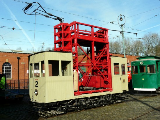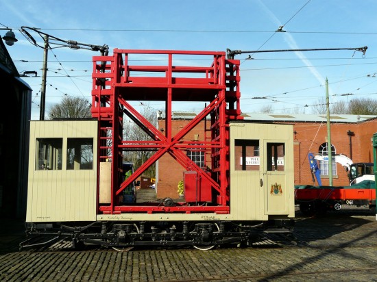 As part of the continued preparations for the 2016 season at the Crich Tramway Village – home of the National Tramway Museum – work on the depot roof saw it necessary to extract all vehicles on road 4 of the main depot. Regular visitors to Crich will know that this is the road which is mainly used to store works vehicles (both operational and stored) but is also home to the longest single decker in the national collection: Grimsby & Immingham 14.