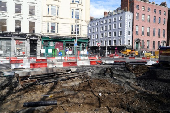 The main news coming out of Dublin recently may have been all to do with the ongoing strike action on the Luas system but there is also some more positive news to report with progress continuing on the construction of the Cross City line. In this pictorial update – with photos from David Jones – we take a look at some of the works currently underway within Dublin City Centre ahead of the planned opening of the line at some point in 2017.