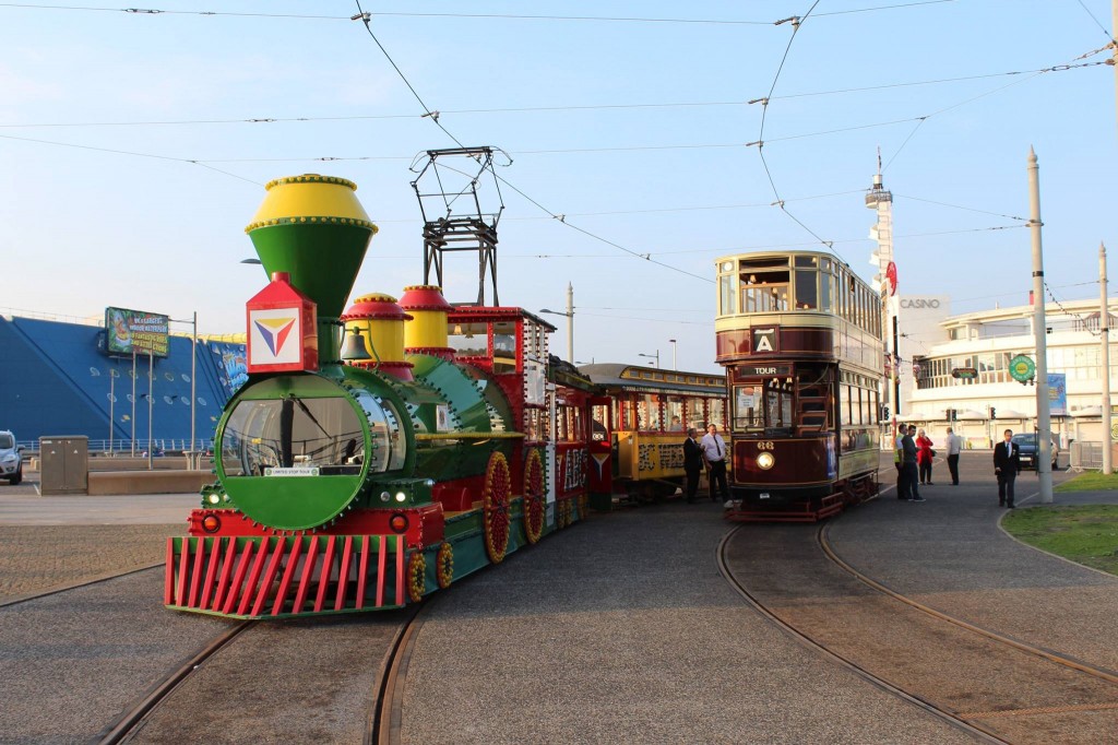 Having suffered a coupling defect earlier in the year, it was pleasing to see 733+734 fit and ready for its first public run of the year. After picking up a near full load of eager passengers on Hopton Road, the Train headed north for the promenade – but only as far as Foxhall, where the trams crossed over for a backwards run to Starr Gate! It is not known when the Train last carried passengers facing the wrong way around, or if it has ever run ‘carriage first’ to Starr Gate before, but this was certainly a great novelty. After the obligatory photo stop, the trams then headed for Fleetwood before returning south to the Pleasure Beach. There, a bonus was provided in the shape of Bolton 66 which was also out on an evening private hire with a party of people in period costume on board adding to the uniqueness of the occasion. It was then back to Fleetwood and then depot in darkness, bringing to an end a very enjoyable tour with one of Blackpool’s most iconic trams. This just goes to show that there are still lots of possibilities for doing different things with the heritage fleet, and long may that continue!