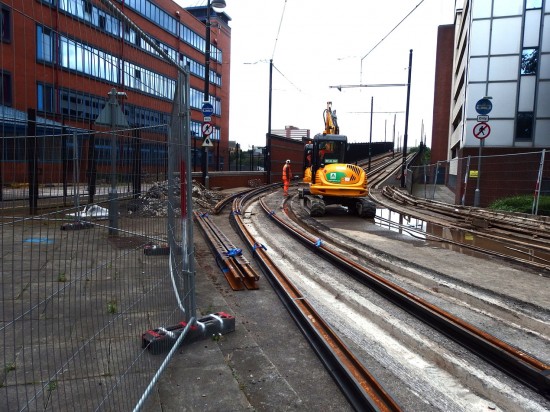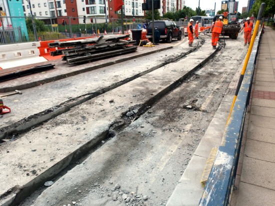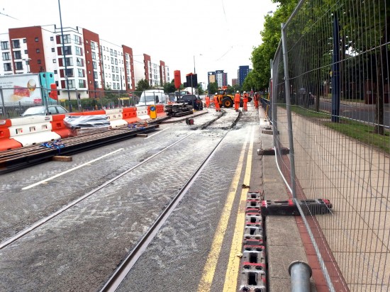 No trams have been running on the Eccles line of Manchester Metrolink since the end of June to allow for the first major rail replacement work on this branch since it opened to the public. In this pictorial update from the camera of Keith Chadbourne we take a look at the scene on 6th July.