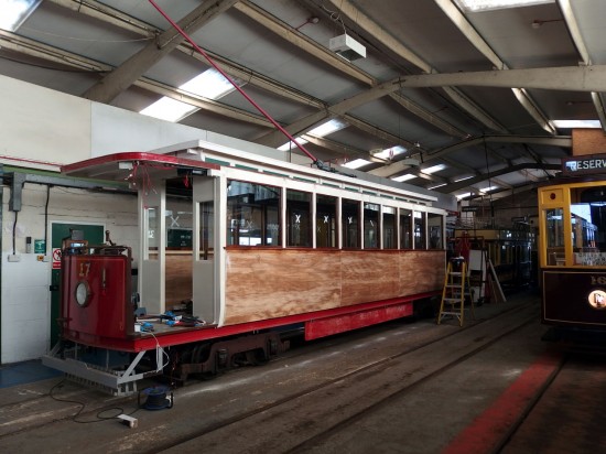 The most southerly tramway in the UK also operates on the smallest gauge and is of course the Seaton Tramway in Devon. In this pictorial update we take a look at the tramway during July including a look behind the scenes at Riverside Depot where we see the latest progress in the conversion of 17 into an enclosed saloon tram. Photos from Keith Chadbourne.