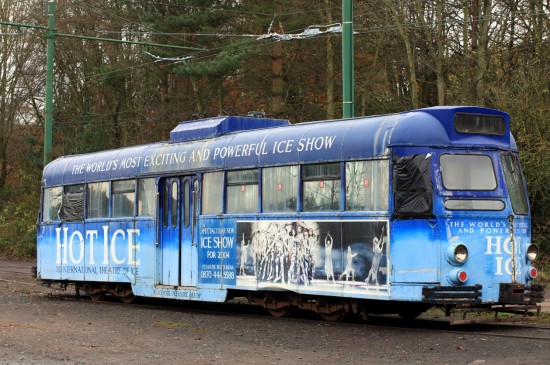It will be recalled that Oporto coal tram C65 moved to Beamish in September this year following its donation by the Tramway Museum Society. Initially this tram was stored outside but recently it has been moved undercover, with 621 being stored on the depot track fan instead. In some respects this is an understandable move – whereas C65 had been kept dry and warm inside the TMS’ Clay Cross store since being shipped to the UK in 2005, 621 had already suffered at the mercy of the great outdoors whilst in the care of the Fleetwood Heritage Leisure Trust prior to its move to Beamish. Indeed, the tram’s external condition leaves a lot to be desired with shabby paintwork, missing windows which had been covered over and other evidence of body damage. Even before it had left Rigby Road the Brush car was obviously in a bad way and so it is probably sensible to store it outside rather than a tram which appears to be in a superior condition. However, standing a popular Blackpool car outdoors in the winter is unlikely to go down well with many tram enthusiasts and if it suffers any further deterioration this could well become an issue when its time comes for restoration. Such a shabby-looking tram painted in a modern advertising livery (the tram retains its ‘Hot Ice’ all-over advert applied in 2000) is also not exactly a great image for the museum, and yet it is now standing in a very prominent position.