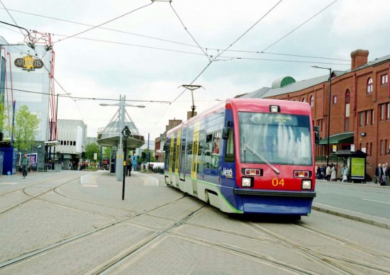 The tram we see in this image is 04 as it departs from Wolverhampton St George’s with a service for Birmingham Snow Hill on 30th May 2000. Of note is that the tram is departing from the outer platform which has since had its track removed and a new coach stop constructed.