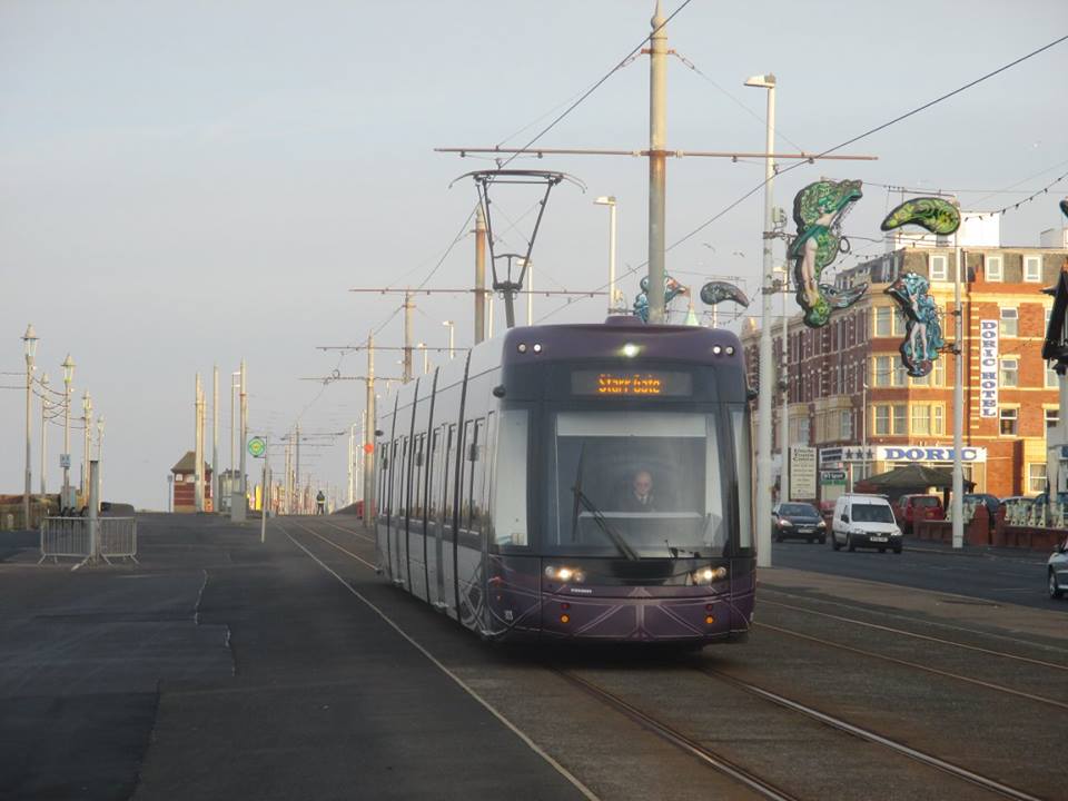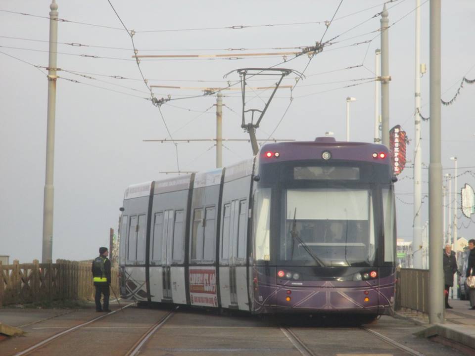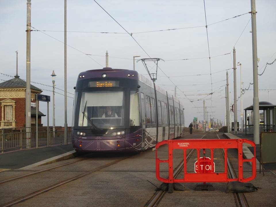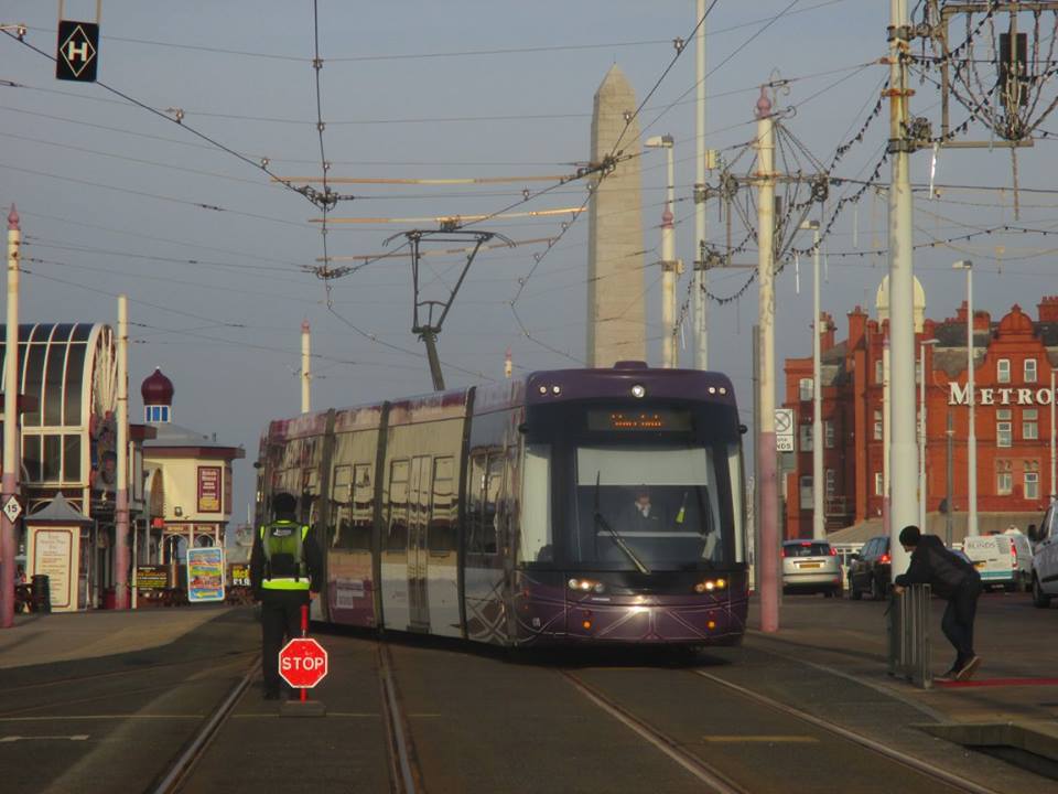 Winter in Blackpool traditionally means work on the infrastructure, and this has been true so far of winter 2016/17. Some track repair works on Monday 5th December meant that, for a few hours, single-line working was enforced between North Pier and Cabin. Although only the modern LRT trams were in service that day this still presented some novel riding and photographic opportunities.