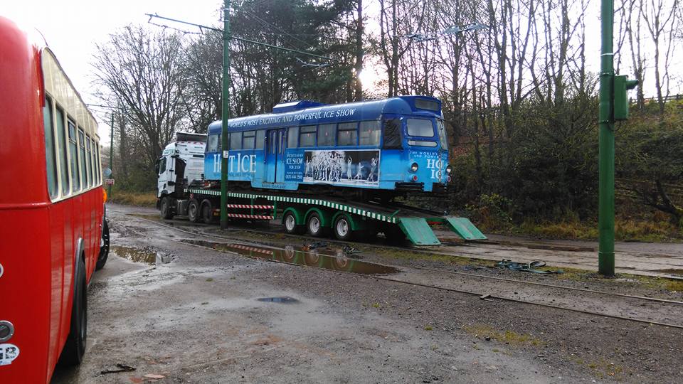 As reported recently on this website, 621 had recently been placed outside the tram sheds at Beamish due to a lack of undercover storage space, as a result of the recent acquisition of coal tram Oporto C65 which had been donated to the museum by the National Tramway Museum. 621 itself had been a fairly recent addition to the fleet, having arrived just two years ago after being sold by the FHLT to a small group of enthusiasts who were keen to see the pioneer Brush Railcoach rehomed at an operating tramway. However, plans for its restoration to working condition at Beamish have not been forthcoming and the museum recently indicated that the tram could be made available to the Blackpool Heritage Trust. Due to the tram’s great historic value this was gladly accepted, and after a brief period of outside storage, arrangements were quickly made for 621 to be transported back to Blackpool, which happened on December 8th. The tram arrived back home safely in the early evening and was soon unloaded onto Blundell Street, as is the norm for tram moves.