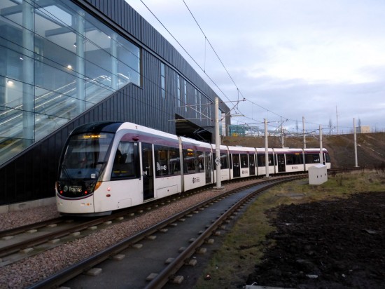 The UK’s newest tram stop opened to the public on Sunday 11th December with the first trams calling at Edinburgh Gateway as expected. The new tram stop is provided between Gogarburn and Gyle Centre and features two platforms with full canopies unlike the small shelters provided on most of the rest of the network.
