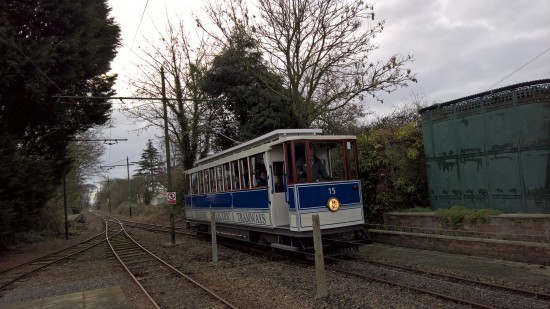 The work in converting 15 to a fully enclosed tram was completed by the end of 2016 and after trial running it was cleared to enter service during December with its first use coming on the Polar Express specials which also utilised fellow enclosed saloons 14, 16 and 19.