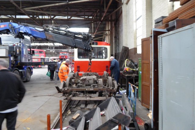 1016 was extracted from the bus garage on 3rd December; no easy feat as it was stored in several components, the main ones being the body frame and truck, which were stored seperately. It was therefore decided to lift the framework onto a waiting lorry using a forklift truck, whilst a crane was brought in to manoeuvre the tramcar truck into position. Both items – along with many other smaller objects which will hopefully assist with restoring the tram to its former glory – were then transported to Blackpool on the same lorry where they are now housed. Once again, thanks must go to the Scottish International Tramway Association (SITA) for ensuring that this valuable tram was able to move to Blackpool, and to everyone involved in its safe transfer to its new home. It is hoped that, at some point in the future, it will be fully restored to its original open top condition, either in Paisley or Glasgow colours as a representative of typical Edwardian tramcar design in Blackpool’s operational heritage fleet, whilst also providing a car which is sure to be popular with Scottish visitors to the seaside town.