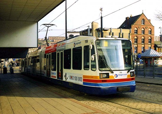 We are back to South Yorkshire for today’s edition of Picture in Time as we take a look at the by then Stagecoach Supertram system in 2003 with tram 119 the main focus of our attention.