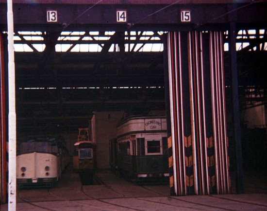 ….and lurking in the darkness to the right – top deck handrails and trolley just visible – is works car 754, now preserved as 31. It was regularly kept on that road when not in use.
