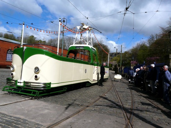 Last week we reported on how Blackpool Boat 236 had re-entered service at Crich following workshop attention over the winter and now the work has been recognised with an official relaunch of the tram on Tuesday 25th April when it was one of four trams to carry passengers at the Museum.