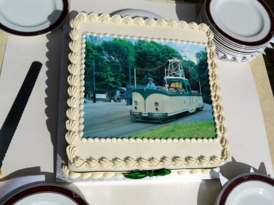 The official relaunch took place at 1100 with Tramway Museum Society President, Alan Barber, cutting the ribbon (and cake – its not a tram launch nowadays without cake!) before 236 entered service for the remainder of the day. Despite the cold front currently across the UK this day also saw London County Council 106 in service alongside Blackpool 167 and Leeds 345.