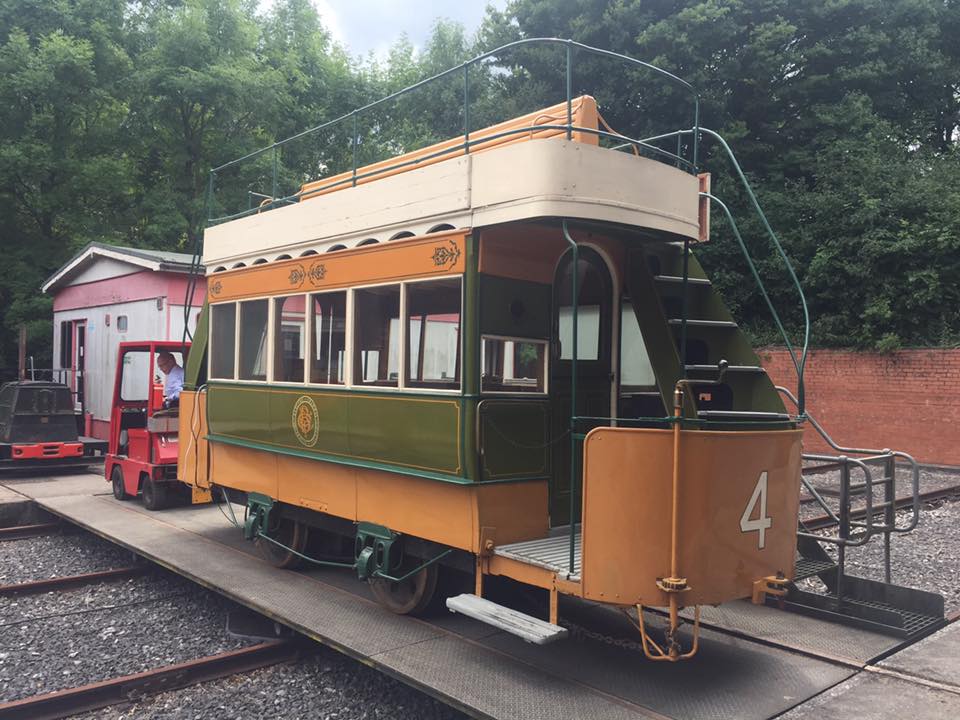 Another view of Blackpool 4 on the traverser with a cheeky glimpse of Douglas 1 hiding behind the Exhibition Hall!