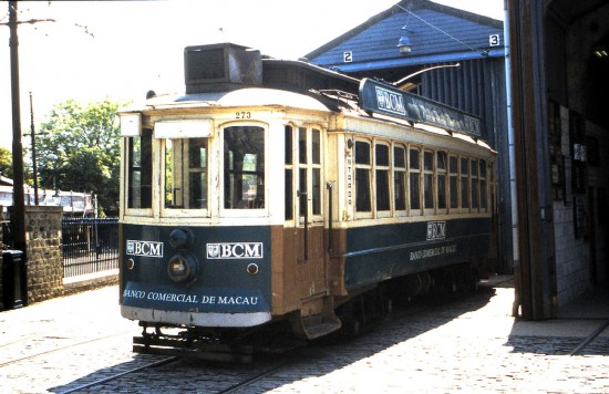 Oporto 273 arrived at Crich in June 1995 having been withdrawn from service in its home country. The tram was built in 1928 and enjoyed the best part of 70 years in service before it was acquired by the Tramway Museum Society in order to showcase a semi convertible car (with its windows opening into the roof for those warm Portuguese days – not quite so often seen in the Derbyshire countryside!). When arriving at Crich the tram was in an advertising livery but it was not the intention for it to retain that livery (the advent of advertising liveries running permanently at Crich was to follow a few years later with Blackpool Jubilee 762) as it was to be restored to original condition in the standard ochre Oporto livery. It entered the workshops in 1998 and a full restoration was completed allowing the tram to enter service in 2001. Since that entry into service the tram has spent some time out of use including a period following an aborted loan to Blackpool in 2010 but it is now a regular member of the operational fleet.