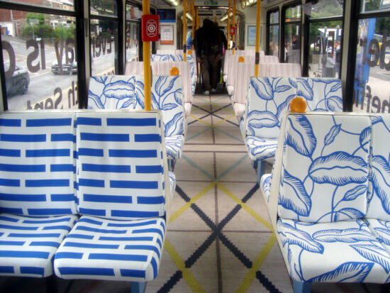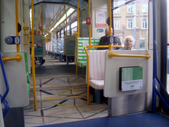 We reported earlier this week that Stagecoach Supertram Siemens Duewag 111 had undergone a makeover courtesy of IKEA to celebrate the imminent opening of a new superstore from the Swedish company at Carbrook tramstop. As well as enjoying an external vinyl wrap livery the tram has also undergone quite an interior transformation as these photos from Stuart Cooke illustrate.