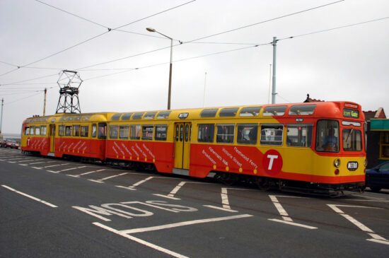 Originally entering service as Second Series English Electric Railcoach 272 in July 1935 the motor of this pair continued in service in the familiar streamlined style until being withdrawn from service at the end of October 1959 having been chosen for the Twin Car project, the fourth such tram to enter the workshops (after original pair 275 and 276 and then 277). Converted into a Twin Motor Car in Blackpool Corporation Transport’s own workshops 272 entered service in September 1960. As with all Twin Cars it was not initially permanently coupled although its matching trailer, T2, had entered service in August 1960. The pair finally got it together permanently in the last month of 1964 at which point 272 lost driving controls from its no. 2 end. Six years later and the trams were renumbered 672+682. Fast forwarding to the 21st century and they were selected for overhaul to aid Blackpool Transport to maintain a service through to Fleetwood with double deckers being banned from the northern section of tramway. Not only were they to receive an overhaul with modern features such as halogen headlights but they were also “treated” to a repaint into Metro Coastlines livery with the bright Line 1 livery of Orange and Yellow selected. 672+682 entered service in this condition at the start of the 2003 season. Remaining in service until the end of traditional tram operations in 2011 the trams were to become part of the heritage tram fleet and enjoyed a repaint into the original all cream livery along with a renumbering to 272+T2. Sadly suffering a fire in September 2016 272+T2 is currently out of service awaiting workshop attention.