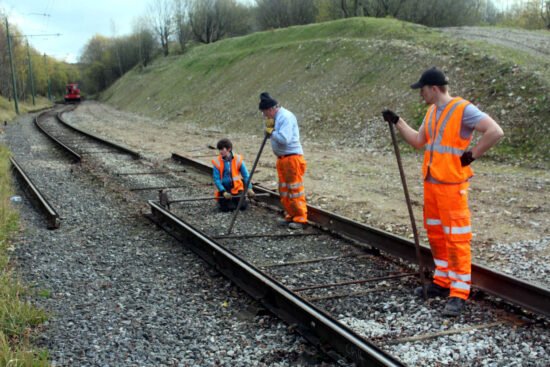 In recent years major track replacement work at the home of the National Tramway Museum has seen contractors being brought into complete the work. However, the recent formation of a Permanent Way team at the museum has allowed this project to be brought in house with the obvious cost savings associated with this being just one advantage.