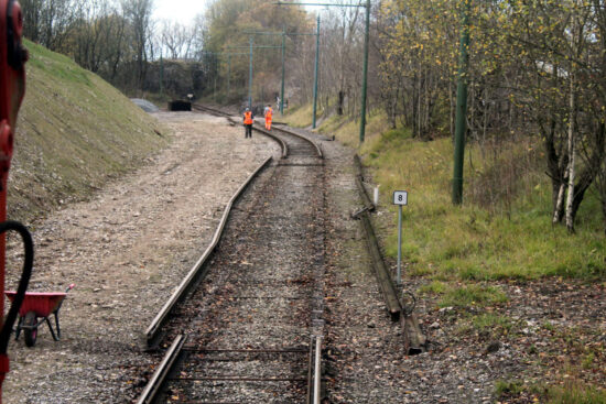 Whilst the main winter project at Crich may be concerned with refurbishing the depots that isn’t all that is going on with a volunteer led project to replace the single line section of track between the Bandstand and Wakebridge. This work started over the weekend of 11th and 12th November with good progress already being made as these photos from Peter Whiteley show.