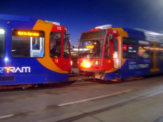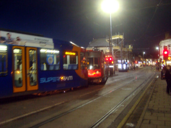 On Friday 8th December Stagecoach Supertram 110 failed at Bamforth Street and with a repair not able to be completed on the scene 115 was coupled to the errant tram and pushed it through to Malin Bridge. The fault was obviously not too major though as 110 was back in service the following day. Stuart Cooke was on the scene to take these photos.