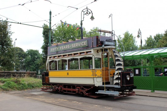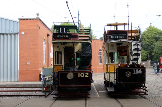As an electric uncanopied open top car mounted on a four wheel truck the loan of Newcastle 114 enabled Crich to fill a gap in their collection as they didn’t have any working example of this type. In being loaned to Crich 114 duly become the first ever (and to date still only) tram to visit from another heritage tramway (all other visitors have come from Blackpool). The loan was only on a short term basis with 114 arriving in Derbyshire on Friday 8th September 2014 and carried passengers on Friday 12th, Saturday 13th and Sunday 14th September 2014 during the Electric 50 celebrations and then on two further occasions on Monday 15th and Tuesday 16th September. The chance was also taken to display it alongside fellow Newcastle tram, 102. It then left Crich on Friday 19th September 2014. It was only short and sweet but it was a successful loan spell but despite this there hasn’t been another loan tram at Crich since.