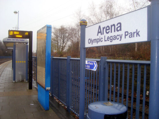 The stop on Stagecoach Supertram’s Yellow route to Meadowhall at Arena has had a name change in recent weeks. Gone is the Don Valley Stadium part of the name with this now replaced by Olympic Legacy Park so the full official name of this stop is Arena / Olympic Legacy Park. The Don Valley Stadium was demolished in 2013/14 and has been replaced by the Olympic Legacy Park which will be home to the Sheffield Eagles rugby team.