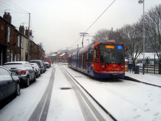 The Christmas period saw some further snowfall across the UK and this time we head to South Yorkshire for some images of trams running in the white stuff on Friday 29th December. As we have come to expect the snow didn’t severely affect the tram services on Supertram although many bus routes had to be suspended. Stuart Cooke with the photos.
