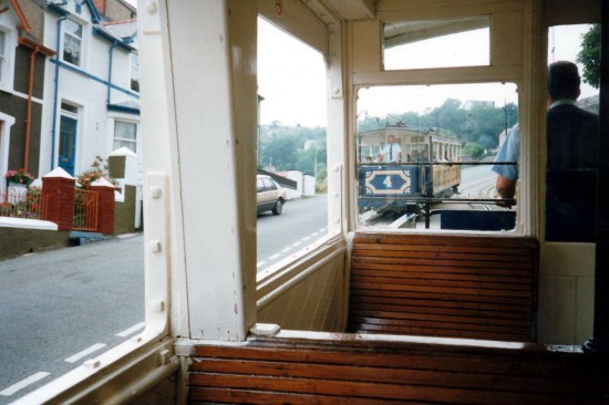 The photo was taken on 29th July 1996 and is taken from within no. 5 which is heading up to Halfway. It has just arrived at the lower section passing loop on Ty-Gwyn Road with its partner, no. 4, approaching as it makes its way down to the lower section terminus. This image was captured just two days short of the Great Orme Tramway’s birthday with it having welcomed its first fare paying passengers on 31st July 1902.