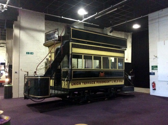 Last year Aberdeen Horse Tram 1 spent four months on display at the old Constitution Street tram depot in Aberdeen, now the Aberdeen Science Centre, on a temporary loan as part of the Silver Stories events – a rare chance to see a tram in its former home. At the time we saw the tram as it was transported from its usual home at the Grampian Transport Museum to the Science Centre but now with thanks to William Brown we can show the tram during its brief display.