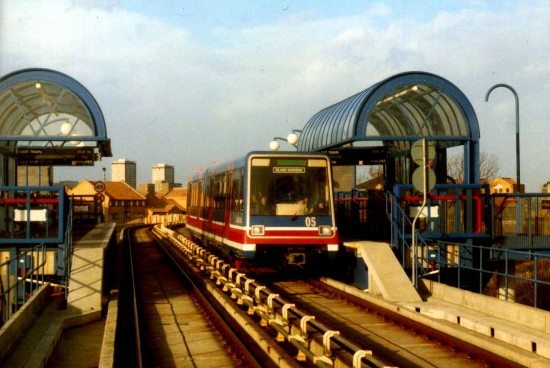 We go back almost exactly 30 years for today’s archive image with a view from the Docklands Light Railway.