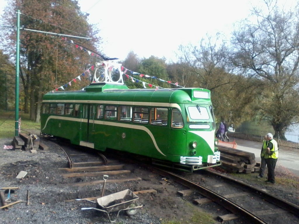 A very smart Blackpool Brush car 623 tests the newly laid track at Lakeside. Note the bunting still fitted to this car from the summer's Diamond Jubilee celebrations.