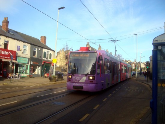 Following the introduction of the new timetable on Stagecoach Supertram on 28th January a number of trams now return to depot during the day as the frequency drops to every 12 minutes. Those trams which return to depot now show Cricket Inn Road as their destination and remain in service until this stop before heading into the depot. Stuart Cooke with the photos.
