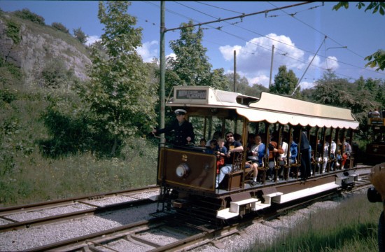 The tram is of course Blackpool & Fleetwood Rack 2 which dates from 1898 having been one of the first trams to run on the Tramroad. Its preservation career officially started in 1963 when it was moved to Crich but it had in fact been restored three years earlier for the 75th anniversary of the Blackpool Tramway having survived as a works car since withdrawal as a passenger tram. At Crich it became the first electric tram to carry passengers and has been a regular performer ever since. It is currently, however, out of service having been withdrawn from service in 2014 requiring workshop attention.